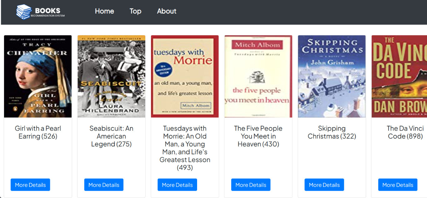 A website with collections of top-read books with the functionality of a recommendation system using Flask. Recommends books based on chosen books using Machine Learning.